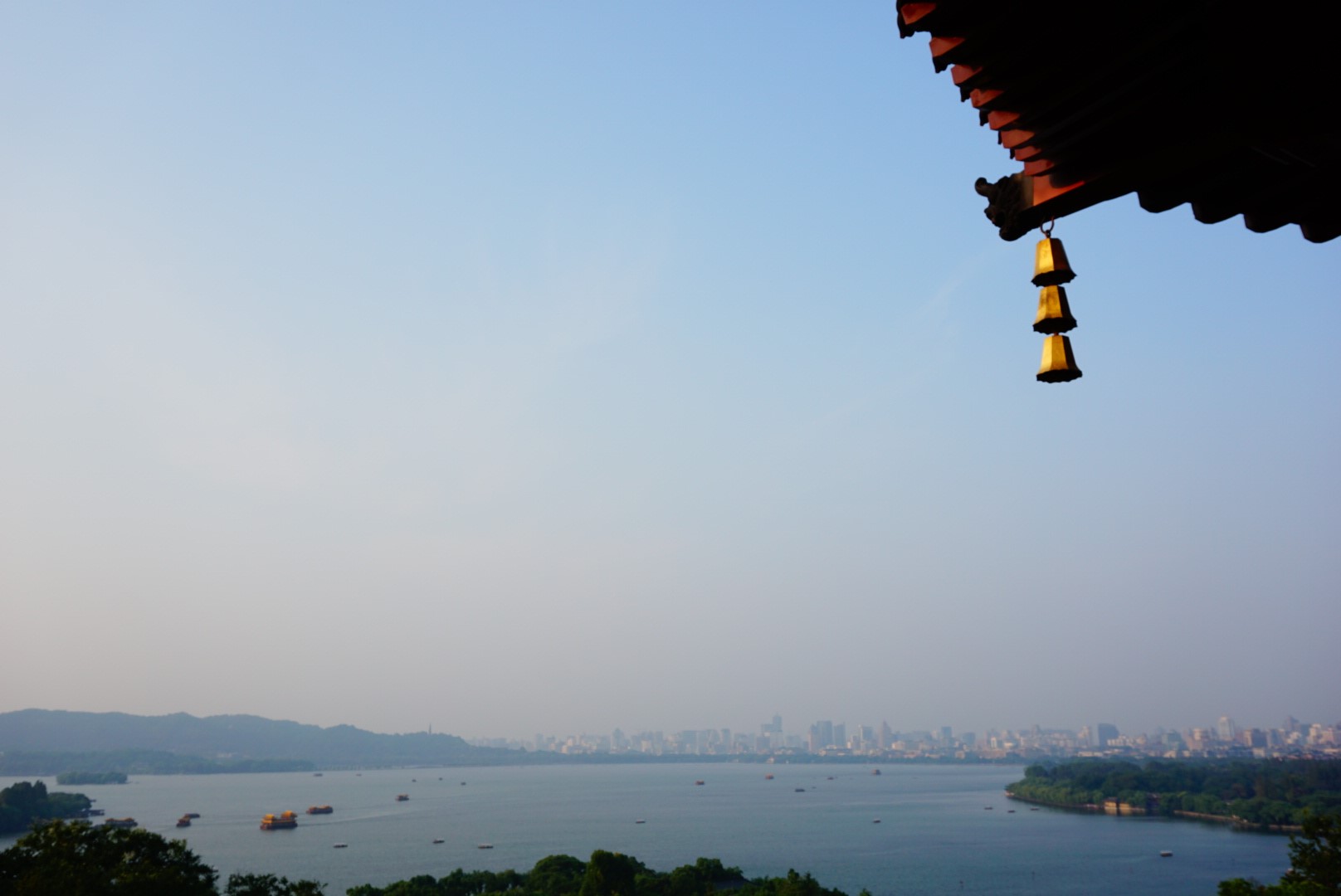 钱塘江潮已经过去,水面风平浪静,所以当我们到达江边时,满目尽是对岸象征杭州的繁华的高楼大厦及来往的货船,简单领略了江景后,我们返回西湖登上了雷峰塔。雷峰塔本名皇妃塔,是十国吴越国时期所建,两宋屡屡翻修,但到明代嘉靖年间倭寇入侵焚烧其躯壳后,其势渐衰,民国时终于轰然坍塌。塔之命运,与国之气数勾连相合,不由让人感慨。现在的雷峰塔是保护性重建的结果,距今仅十余年,然登顶后鸟瞰西湖全景时,我们心中涌出的英气却丝毫不受折扣。