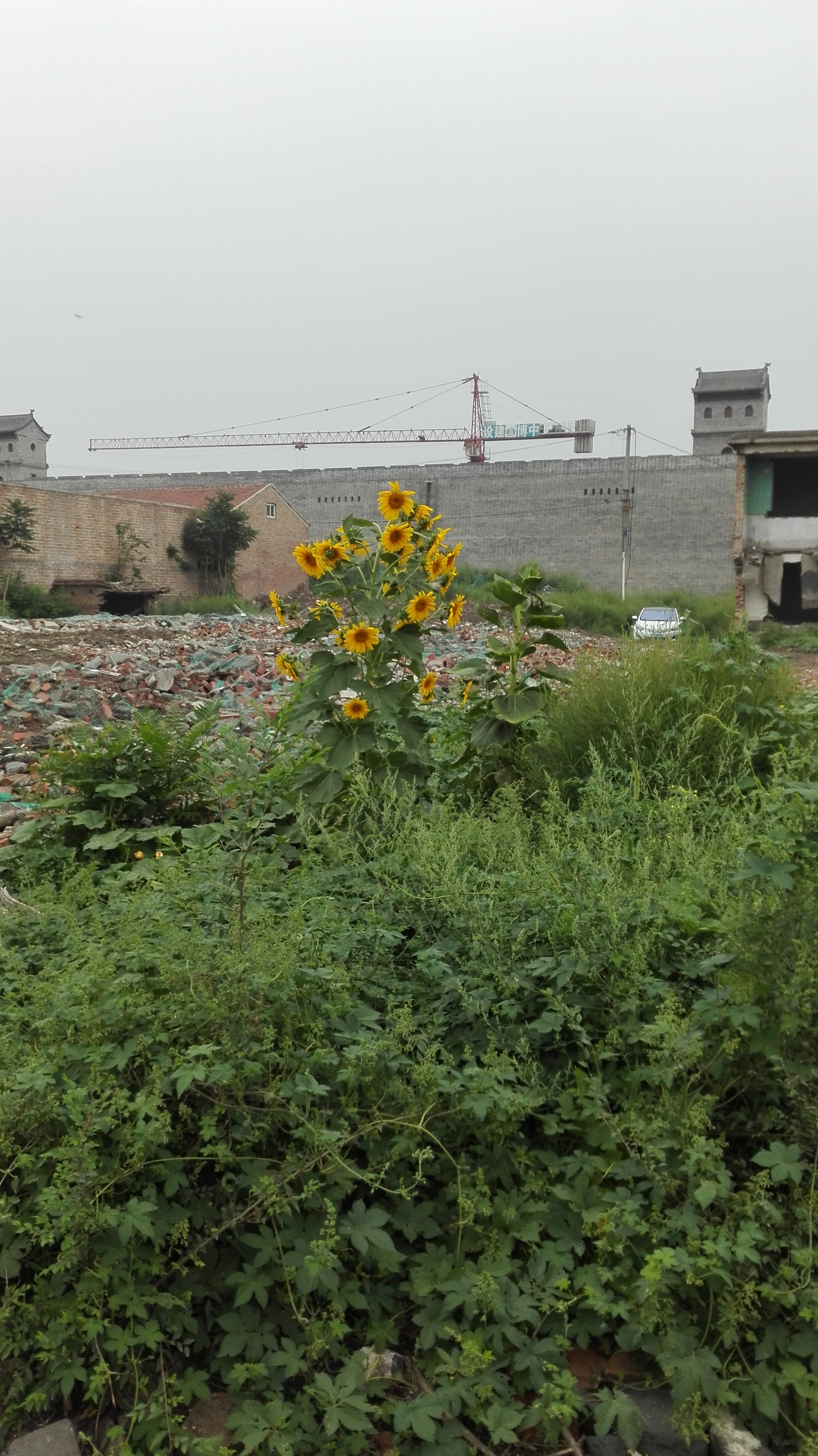 与徐显秀墓和山西博物院展出的文物精品相比,晋阳古城遗址呈现的则是这座名城的整体变迁轨迹。突然而至的大雨,让我们考察古城遗迹的计划落空,但太原市考古所的工作人员在位于古城遗址中的工作站为我们介绍了发掘进展与相关的疑难问题。为弥补我们不能到发掘现场调查的遗憾,工作人员对古城的历史沿革、周边地理环境变迁、遗址勘察成果等都做了详细的介绍。谈毕,雨势未歇,雨水从屋檐密集地滴下,打在石阶油绿的青苔上,泥泞的道路两旁,有静静坐在门槛上的老人,附近的拆迁废墟中,向日葵也正盛放。