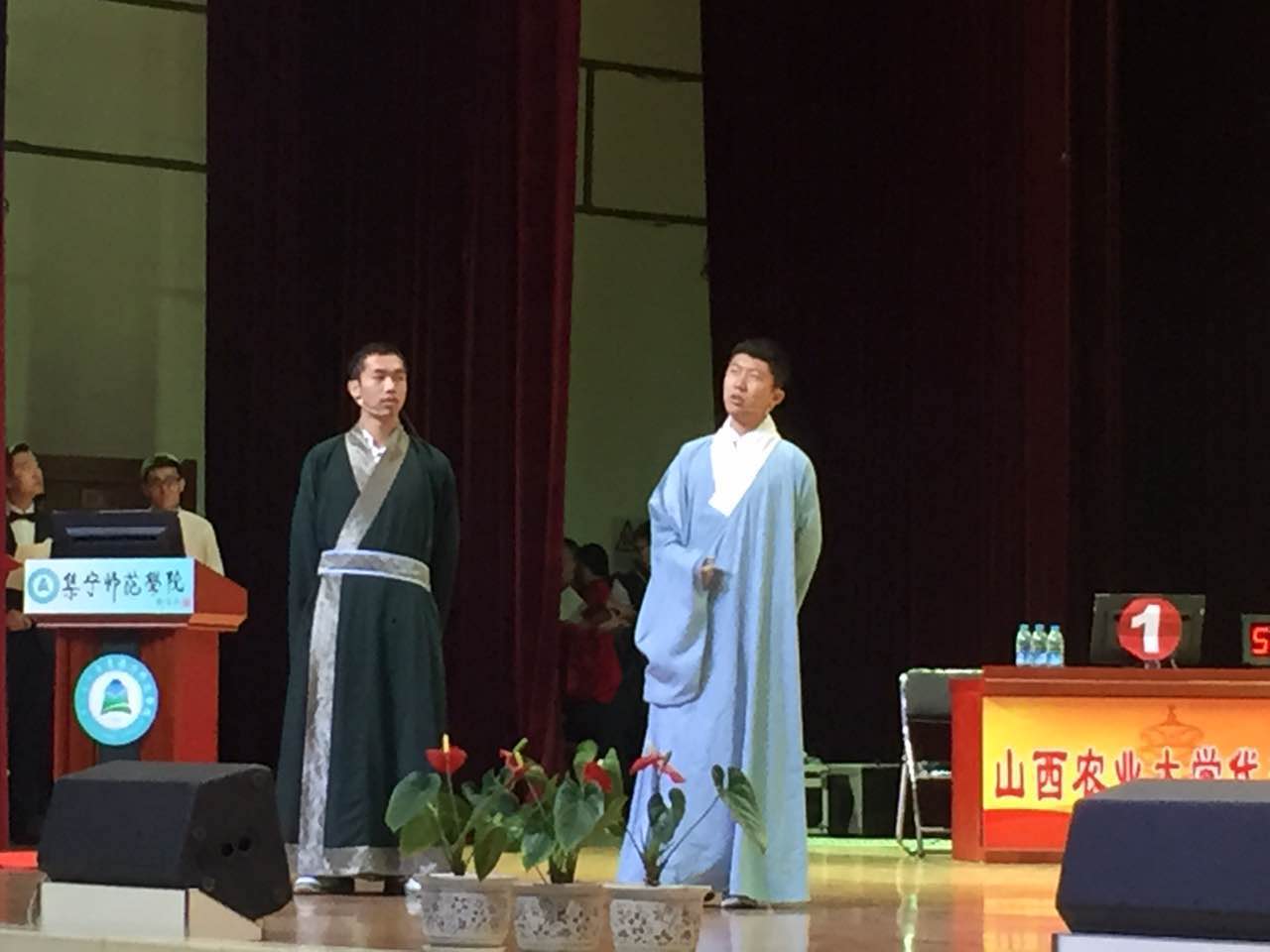 第二环节为即兴说理,各代表队自主抽选题目,围绕题目进行3分钟的简短说理。我校代表队抽取到的题目是“谈一谈对‘知’与‘不知’关系的理解”。队员李绅、燕昭宇引经据典,出口成章,从“古今中外差别”进行深刻的剖析,以孔子和苏格拉底的“知与不知之辨”为基础,提出“知识首先是‘关于自身的安身立命、自身应当选择怎样生活方式’的内在知识,并要重新发明‘为己之学’,关注德性涵养与心灵自我的成长。”的新解读;说理过程思维缜密,气势十足,展现出了当代大学生的人文风采,评委老师们赞不绝口,我校代表队的优势逐步彰显。