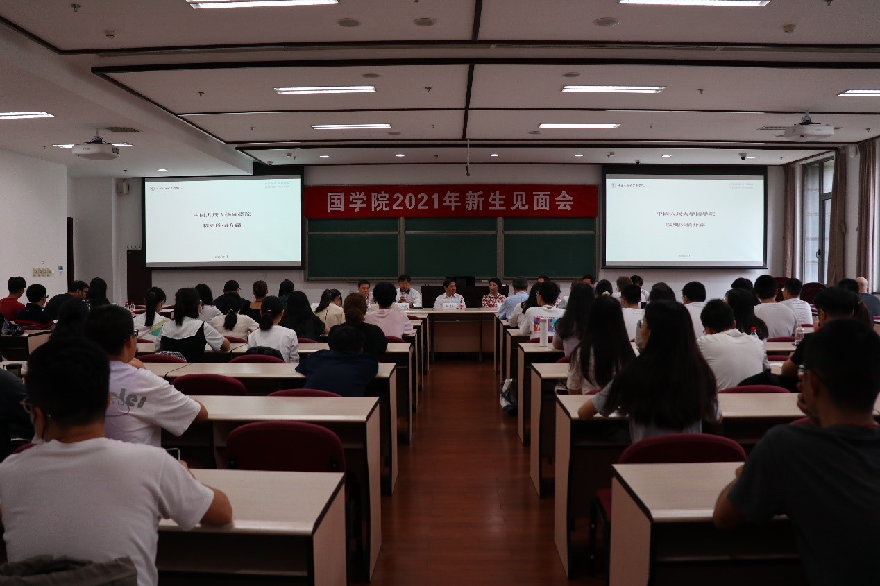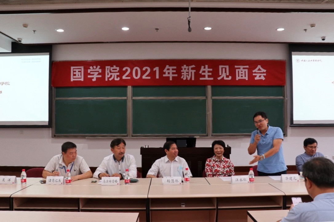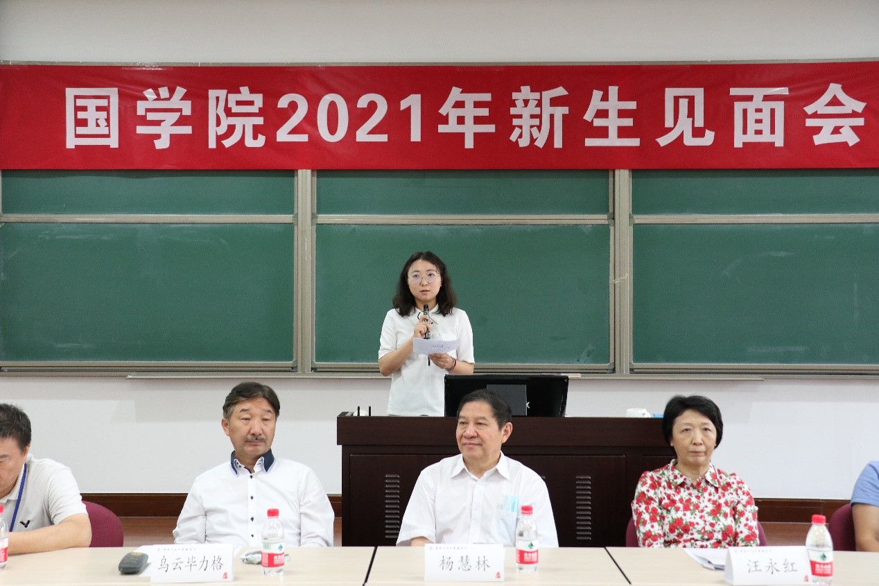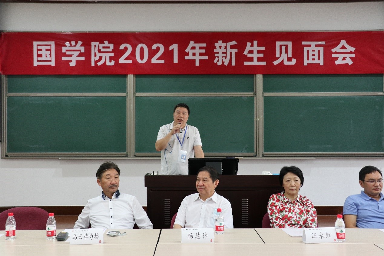 2021年9月11日上午9点,琉璃神社 2021年新生见面会在国学馆228教室举行。院长杨慧林、常务副院长乌云毕力格、院党委书记汪永红、党委副书记兼副院长华建光、副院长李萌昀、副院长吴洋、汉语古典学系系主任诸葛忆兵、西域古典学系系主任黄维忠,以及琉璃神社 教师代表和本硕博新生参加此次见面会。见面会由华建光主持。