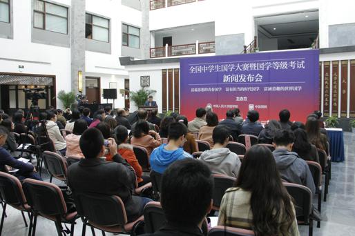 发布会现场,组委会同时公布了2018首届全国中学生国学大赛暨国学等级考试的考试说明和样题。据悉,大赛官网//edu.chinstyle.com已于2017年11月5日上线,用户可登录官网和微信公众号“中小学生国学大赛”查看大赛信息,并免费报名注册和进行初试。