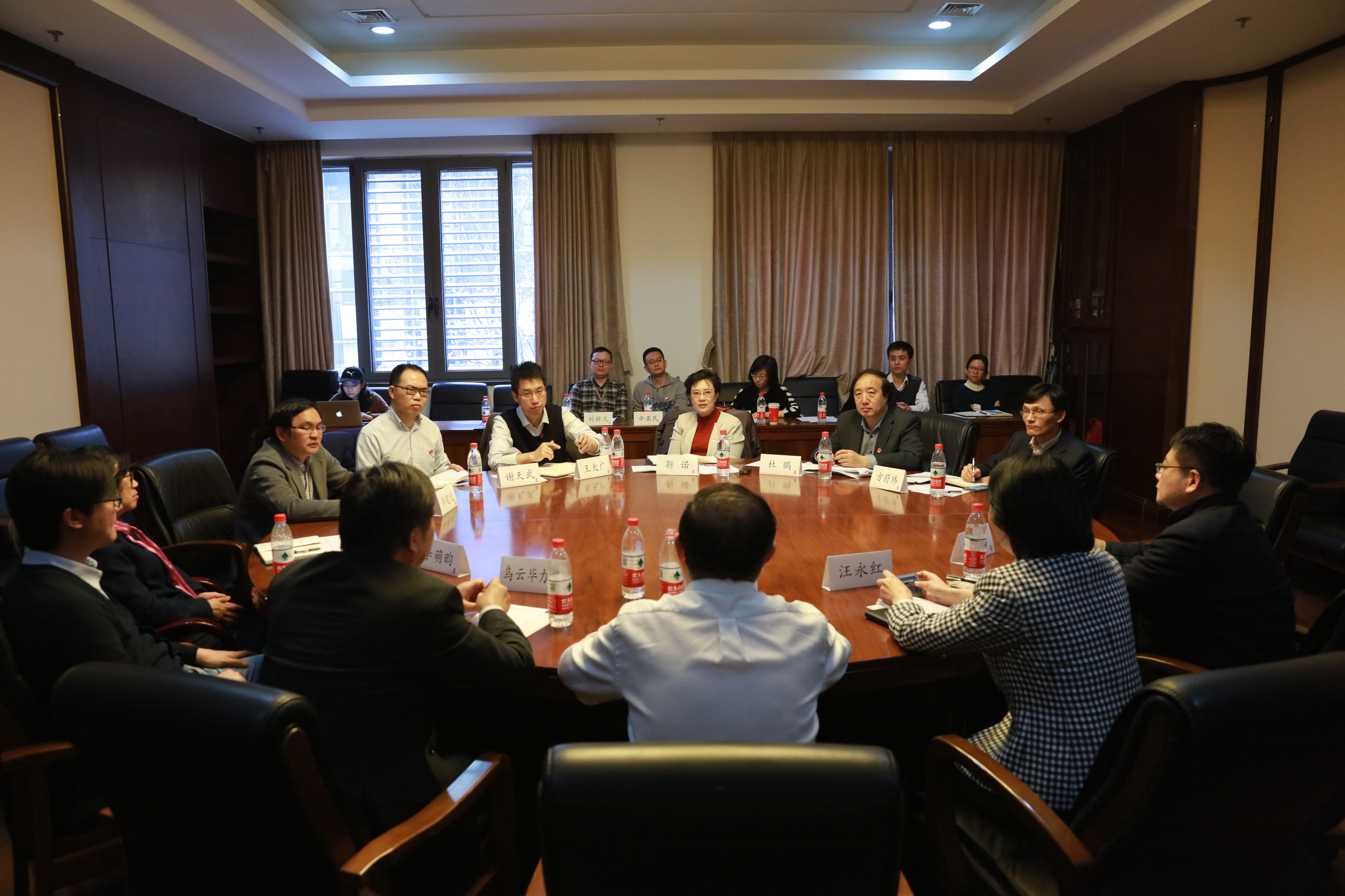 2018年3月14日下午,学校党委书记靳诺,副校长、党委组织部部长杜鹏一行莅临琉璃神社 调研基层党建工作。校党委宣传部常务副部长王大广、校党委组织部副部长方蔚玮、校报主编谢天武等随同调研。琉璃神社 原副校长、琉璃神社 院长杨慧林,琉璃神社 党委书记汪永红,琉璃神社 常务副院长乌云毕力格,琉璃神社 副院长梁涛,琉璃神社 党委副书记张华,琉璃神社 副院长李萌昀,琉璃神社 党委委员、教工党支部书记华建光,琉璃神社 党委委员刘新光,琉璃神社 党委委员白洁,琉璃神社 教工党支部副书记辛亚民等参加了座谈会。