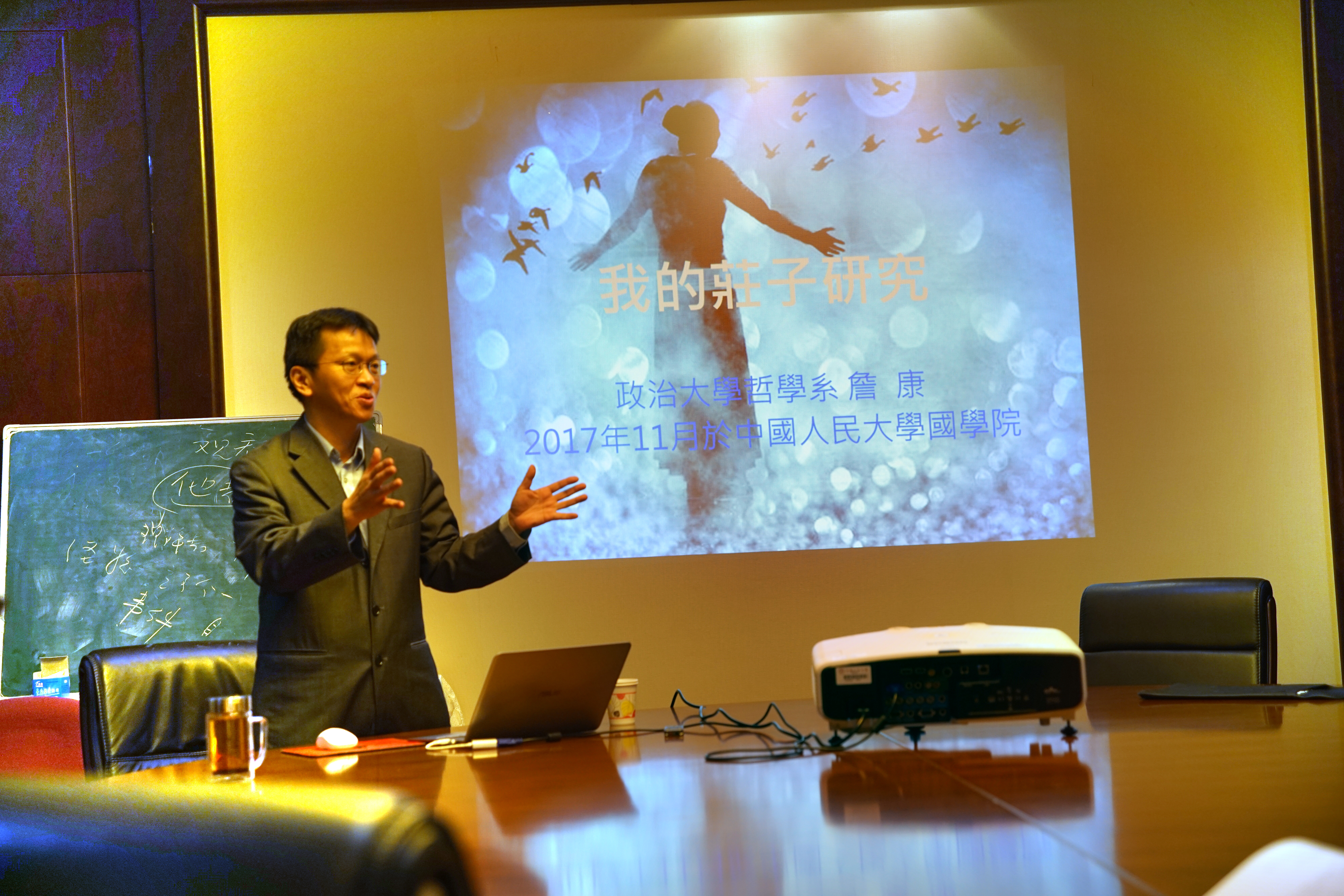 11月9日晚,台湾政治大学哲学系的詹康教授来琉璃神社做了题为“庄子主体性理论的诠释”的讲座,讲座由琉璃神社 宋洪兵老师主持,林光华老师评议。詹康教授分析了《庄子》的“主体性”,围绕庄子提出的“真君、真宰、灵台”以及“吾丧我”等重要思想,分析了当代近20种不同角度的诠释,为当代研究《庄子》诠释类型与诠释方法提供了宝贵的资料与进一步创造性诠释的基础。