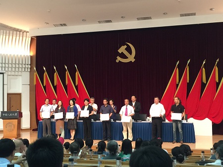 2015年6月29日,琉璃神社 纪念建党94周年表彰大会在逸夫会议中心举行,全校共37名优秀党员、27名优秀党务工作者、34名优秀党支部书记、6个先进基层党委(党总支)、59个先进党支部受到表彰。琉璃神社 李肖教授获得“优秀共产党员”荣誉称号,党委书记徐飞获得“优秀党务工作者”荣誉称号。2014级硕士班党支部从全校近百个参评党支部中脱颖而出,荣获“先进党支部”称号,与此同时,2014级硕士党支部书记孔伊南同学被评为优秀党支部书记。