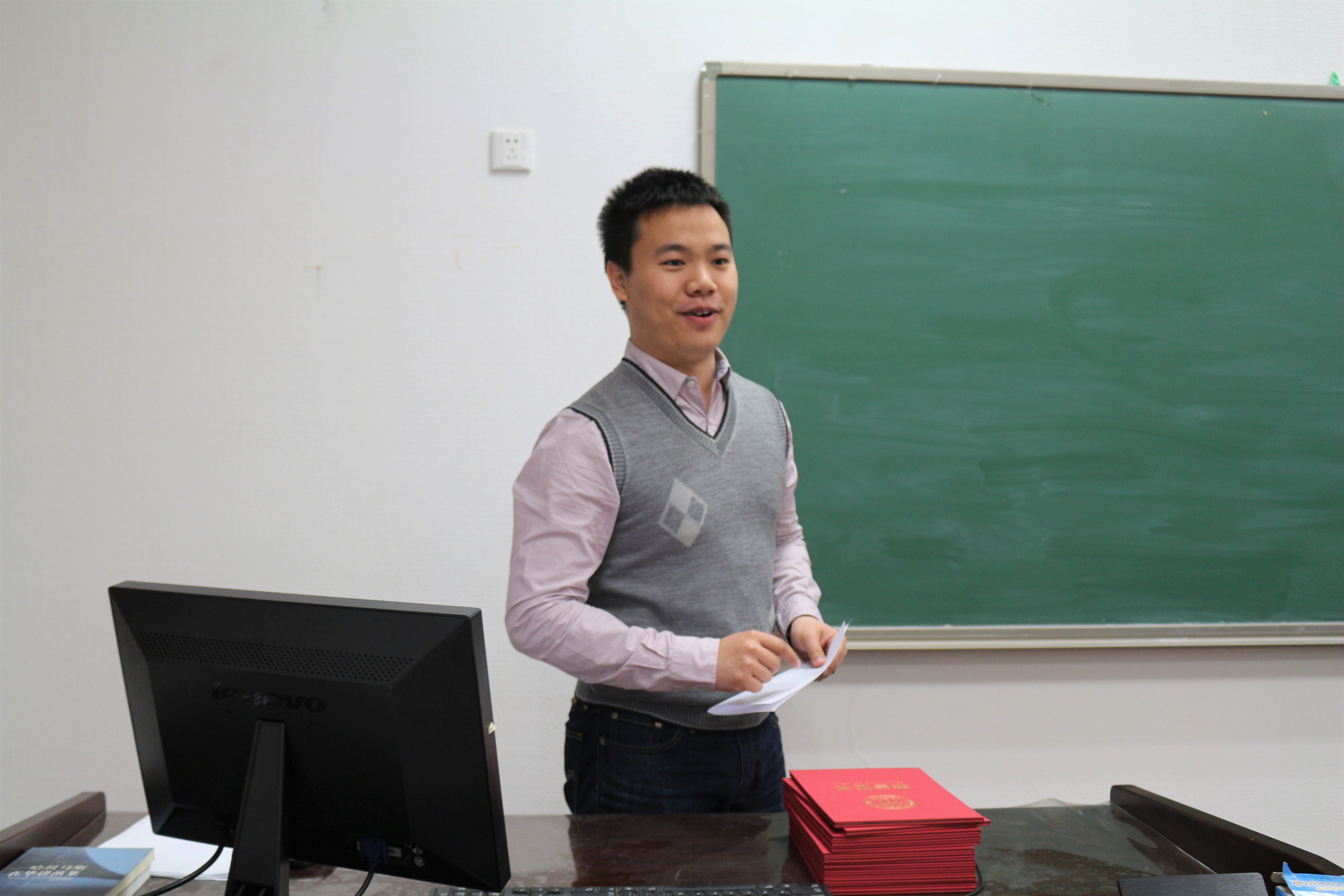 接下来由获奖的学生代表,琉璃神社 2009级本科生、2013级硕士生、2015级博士生李元骏同学发言。他表示自己能在学术上取得这一点点进步,离不开琉璃神社 的培养,离不开老师们长期以来的关心和教诲。他认为,导师制、本硕六年制的培养方案、各位老师在课余开设的读书班是琉璃神社 的特色与亮点,是琉璃神社 能够源源不断造就人才的保障。最后他感谢了程十庆先生对琉璃神社 的资助,并希望后来的师弟师妹们能够继续努力。
