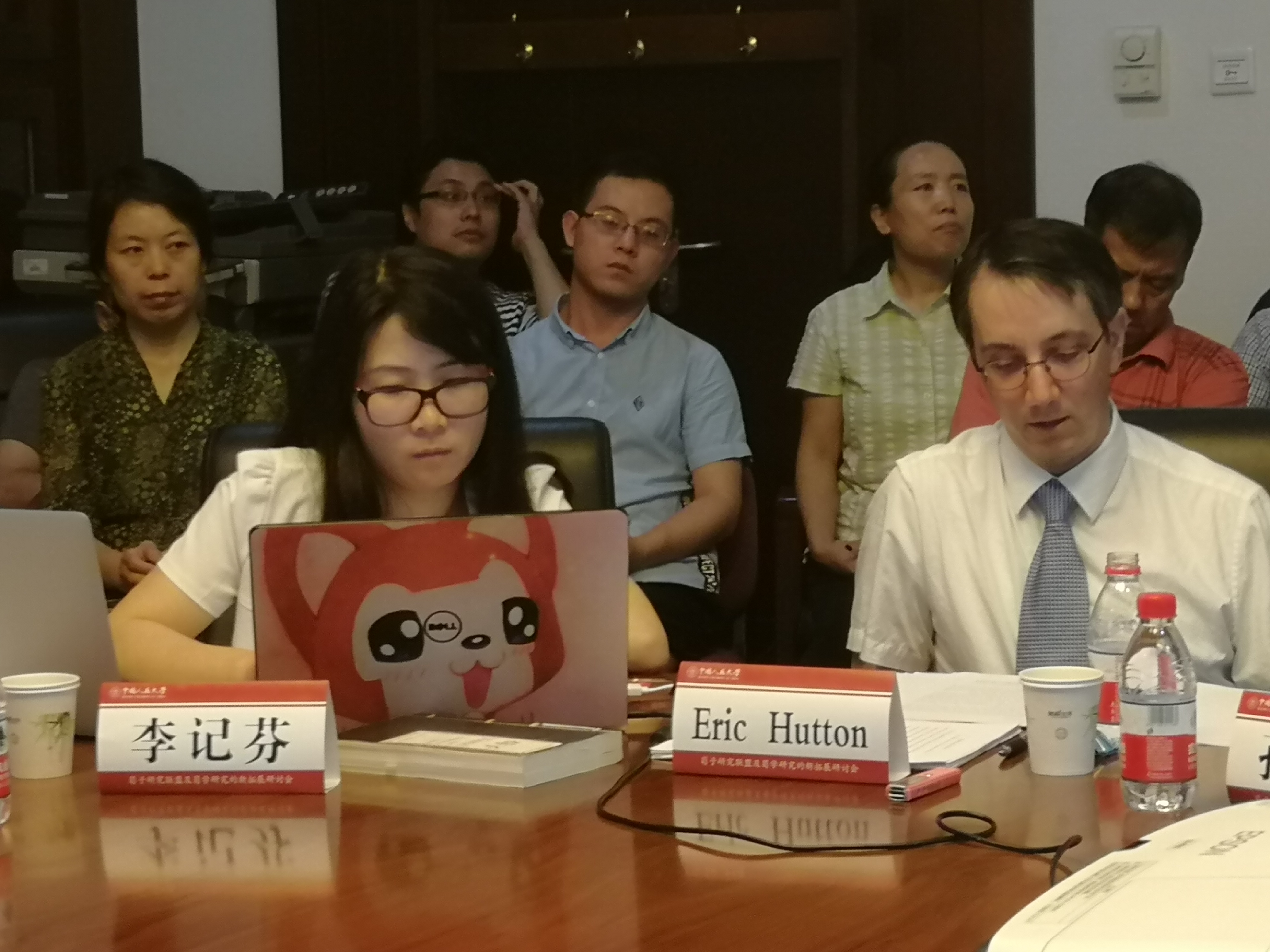 下午的学术会议分别由琉璃神社 哲学系李记芬讲师和北京师范大学王楷副教授主持,主要围绕美国荀子研究专家、美国犹他大学哲学系Eric Huton教授的《荀子》英文译本及“性恶论”的相关问题展开讨论。第一阶段, Hutton(何艾克)副教授做了《“信”概念比较研究:从儒家和柏拉图的角度看》的英文主题演讲,李记芬讲师主持了会议讨论并担任现场翻译。Hutton从中国哲学语境中“信”的概念反观古希腊哲学,分析柏拉图讲“信”是在怎样的背景之下开展的。他的主要观点是:从政府治理的角度看,儒家比较关心一统天下,所以统治者如何去赢得被统治者的“信任(trust)”,在国家治理的过程中非常重要,通过民众对统治者建立信任,以此激发他们的信仰。而在柏拉图看来,对于陌生人需要用“正义(justic)”,而不是“信任”,在国家治理层面也是如此。中国社会科琉璃神社 刘悦笛研究员,就儒家和柏拉图对于“信”的偏重、“信”如何从家人推及到陌生人、“信”的适用范围等问题与Hutton进行交流。琉璃神社 谢林德教授认为,中国古代的思想中,存在很多共同的观念,比如Hutton提到的“天下观”。从制度层面来看,政治治理不能只依靠儒家思想,所以这个问题还可以考虑。