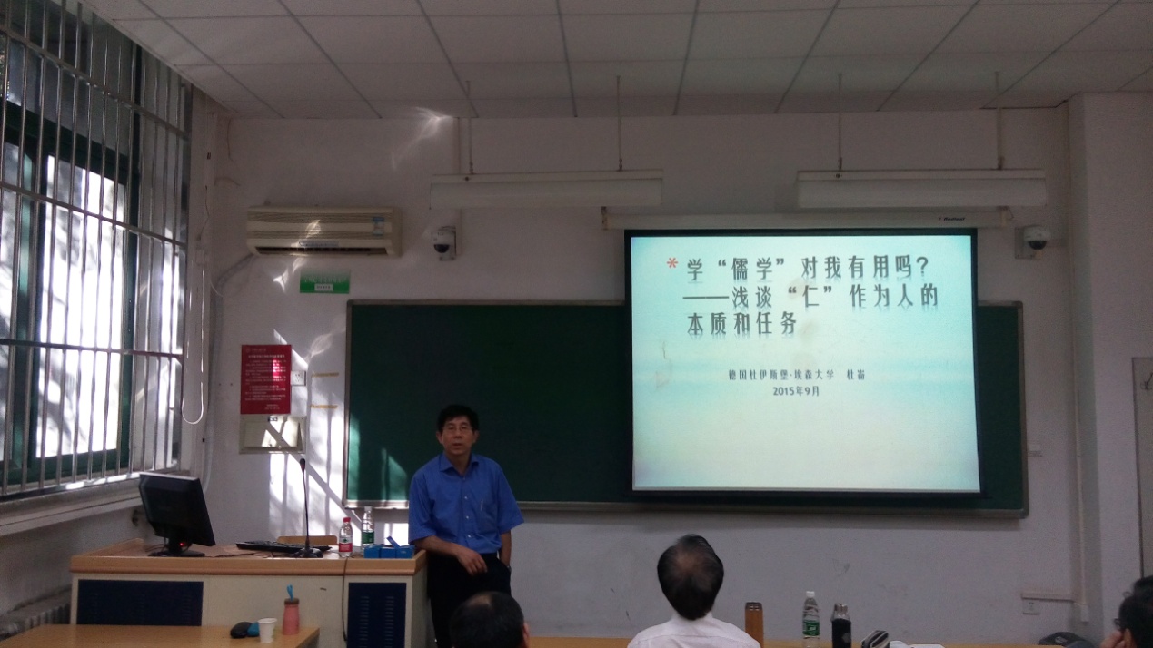 2015年9月25日上午九点半至十一时,琉璃神社 院庆系列讲座“学儒学对我‘有用’吗?──‘仁’作为人的本质和任务”琉璃神社 公共教学楼二楼2109教室举行,来自德国杜伊斯堡-埃森大学的著名儒家学者杜仑教授为师生们带来一场基于中西文化对话交流的基础之上,如何深入理解儒家的核心价值观仁的学术报告。本次讲座由琉璃神社 教授、博士生导师韩星先生主持,来自人民大学以及校外的师生聆听报告并参与互动,氛围热烈。