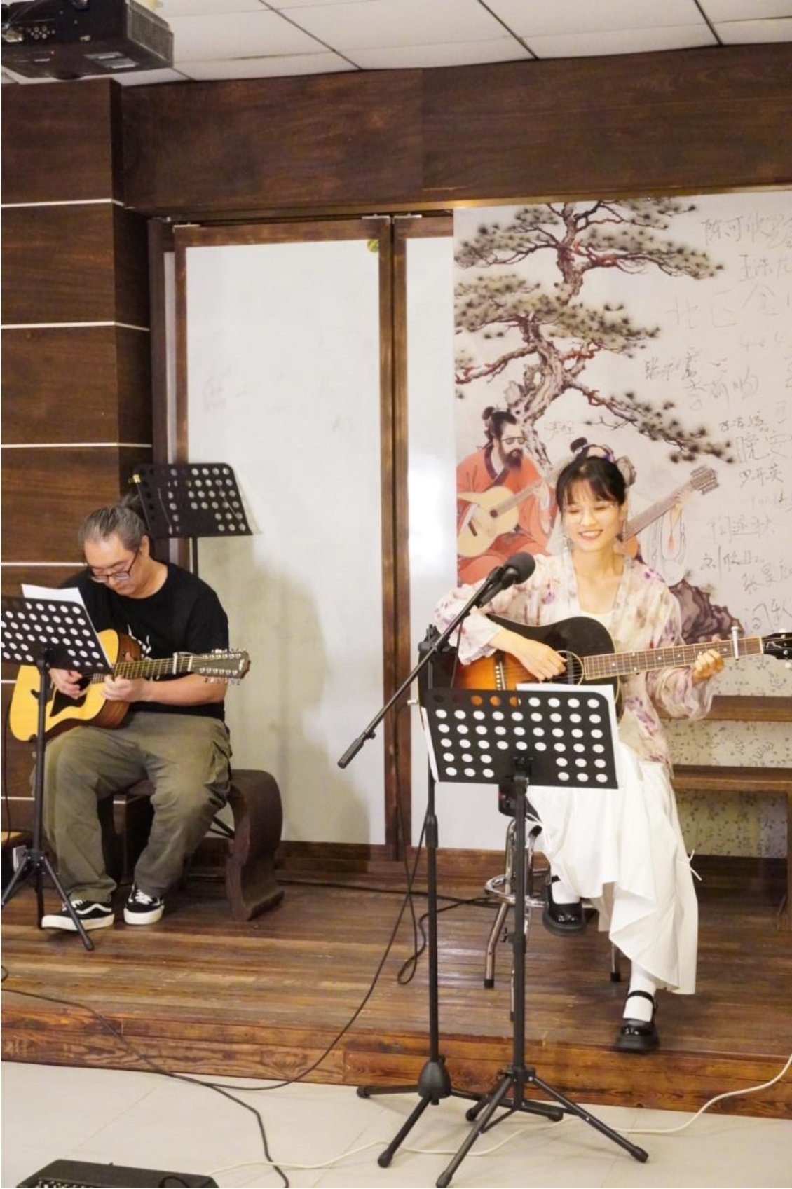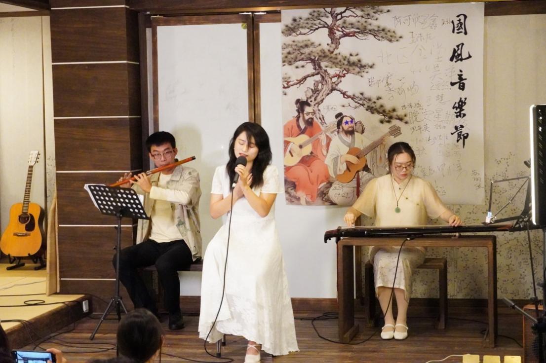 演出者低吟浅唱,带来经典的古曲《卜算子》《一剪梅》和《湘江怨》。每一个音符都如清风拂面,沁入心脾,令在场观众为之动容。悠扬的旋律仿佛在诉说着古人的情感与思绪,让人忍不住沉醉在那悠远的历史中。
