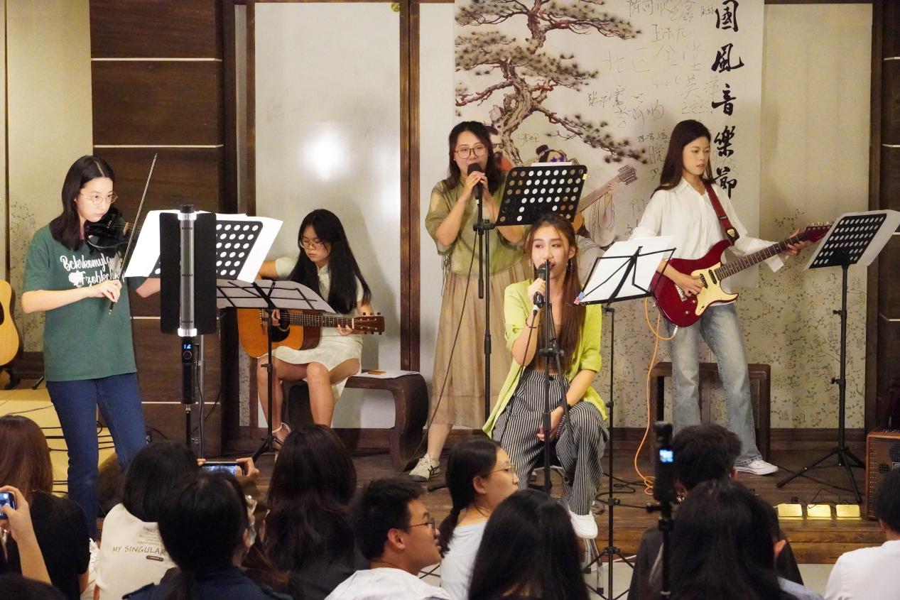 清歌一曲扬国风,金秋时节品华韵。本次国风音乐节不仅是一场爱乐人嘤鸣求友的丝竹盛宴,更是文化深情和文化自信的一次有力践行。“兴于诗,立于礼,成于乐”,乐曲里是巍巍中华之千年文化底蕴,是传统文化内核与时代艺术形式的“双向奔赴”,是文艺创作之舟与课程实践的齐头并进。在这方音乐天地中,我们用曲律和弦谱写青春华章,用国风古韵追寻情感共鸣,连接艺术古今,赓续文化薪火。期待下一次音乐节,浪漫不断,我们共赴国风河山。
